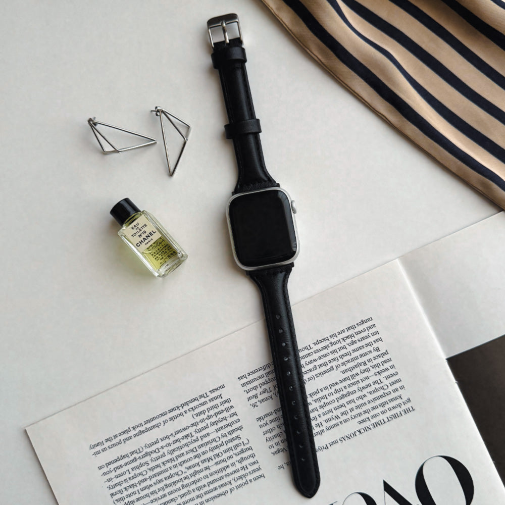 【Apple Watch38/40/41/42(S10)mm専用】Real Leather Band for Apple Watch (BLACK)